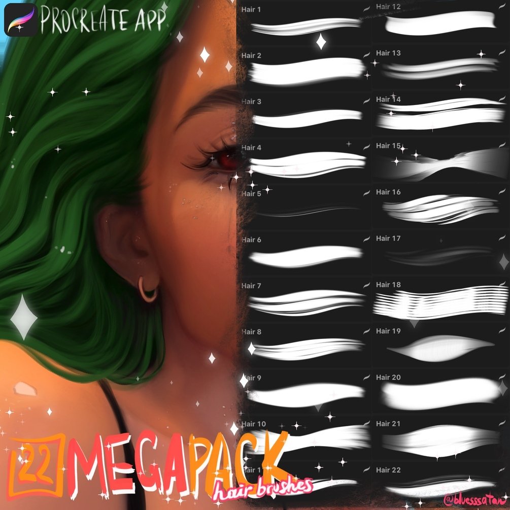 22 MEGAPACK hair brushset for Procreate app